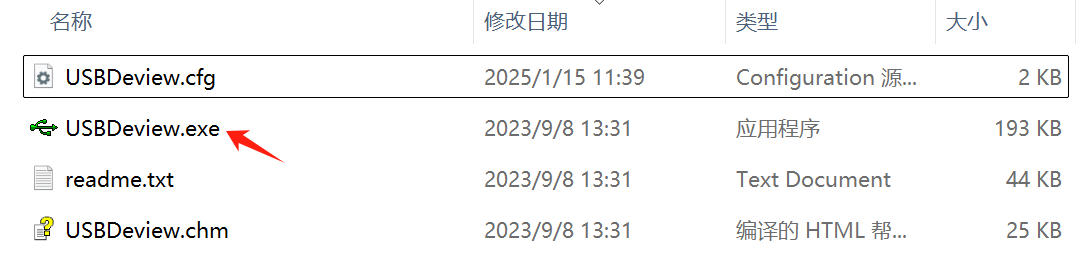 下载后解压(USBDeview下载地址在文末),然后运行USBDeview.exe。