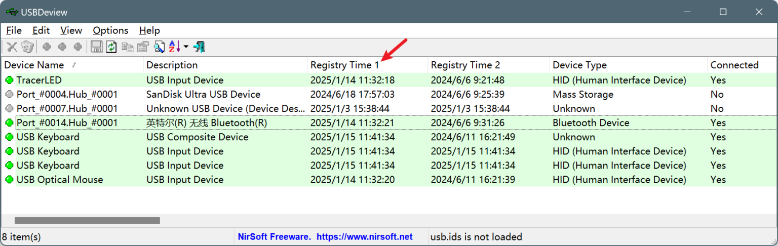 为了发现是什么设备导致的,我们可以借助一个软件解决,软件名称"USBDeview",借助它即可找到元凶。